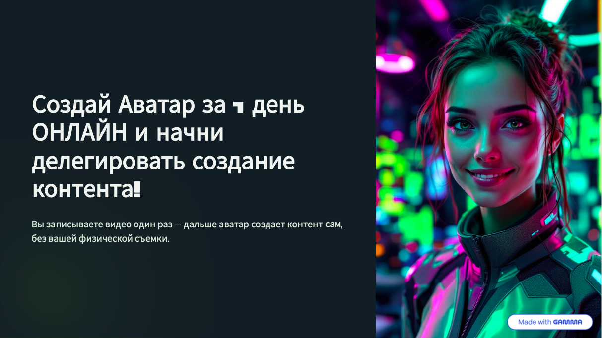 Освободи свое время от рутинны и сосредоточься на стратегических задачах, делегировав часть создания контента вашему AI-аватару.